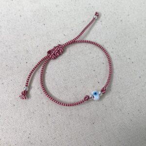 Silk thread bracelet featuring a small round charm with cold enamel, silver beads, and adjustable closure. From the ‘The Art of Play / Enamel Era’ collection. -925 sterling silver – Motif size: 0.7 cm